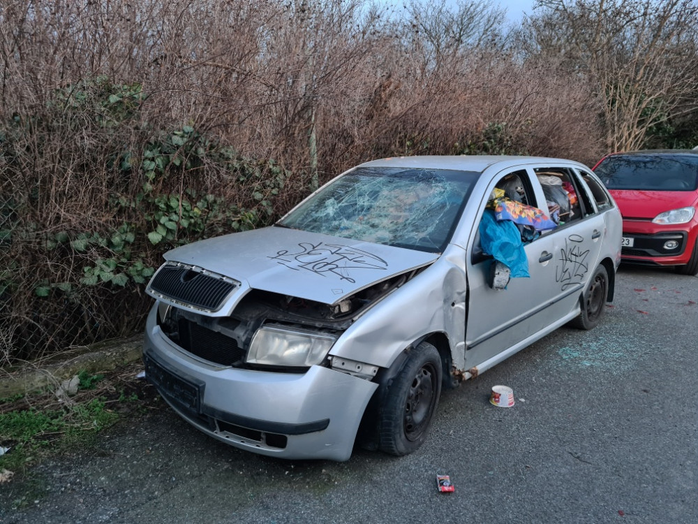 auto bez SPZ plné tašek s odpadem