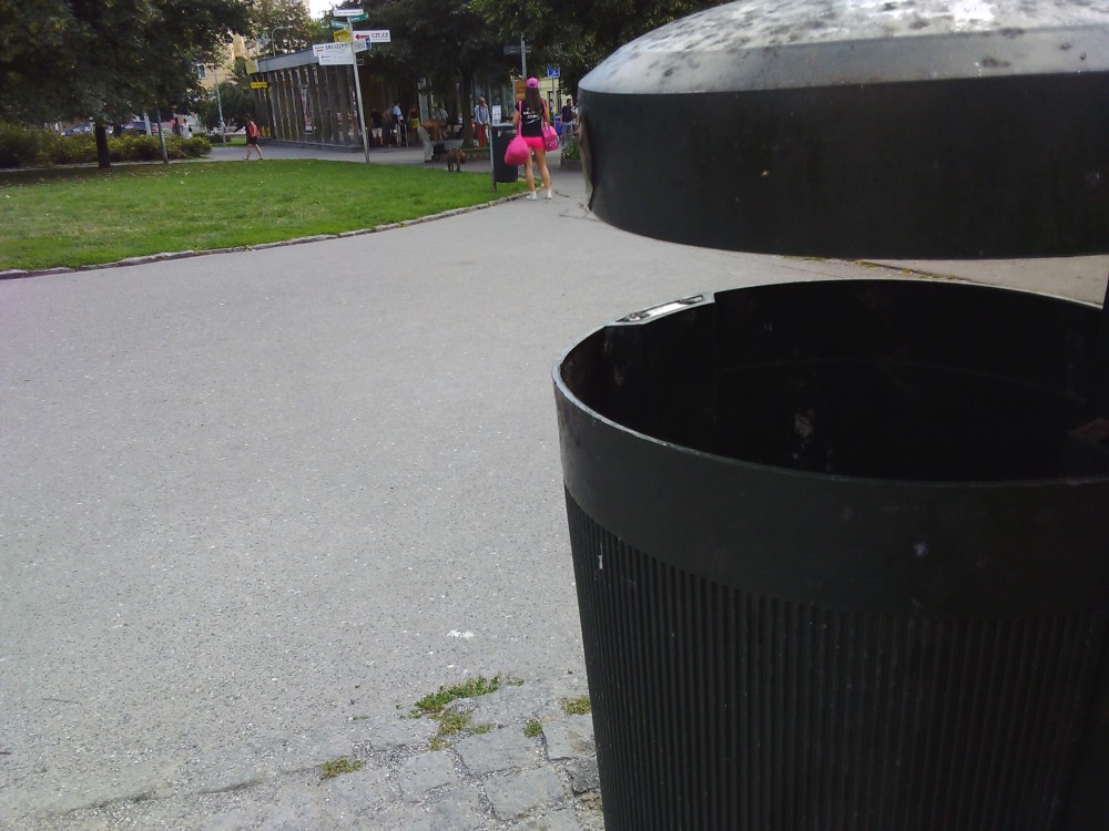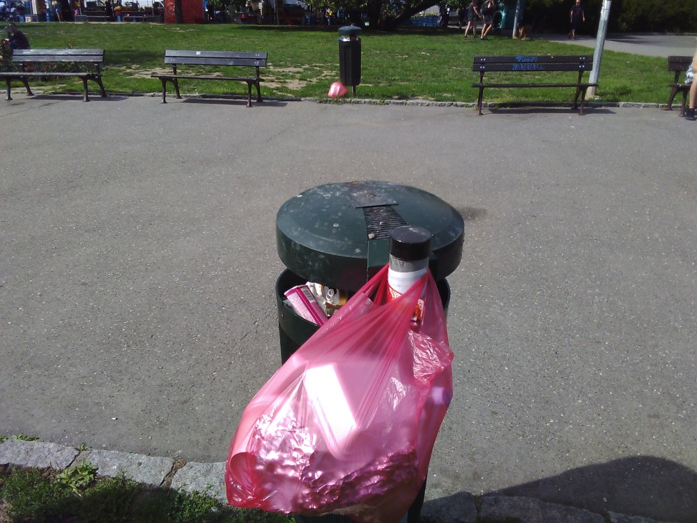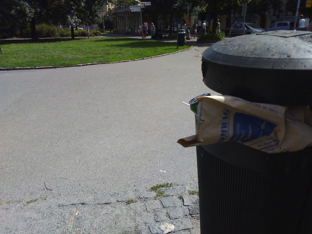 Téměř všechny koše přeplněné.