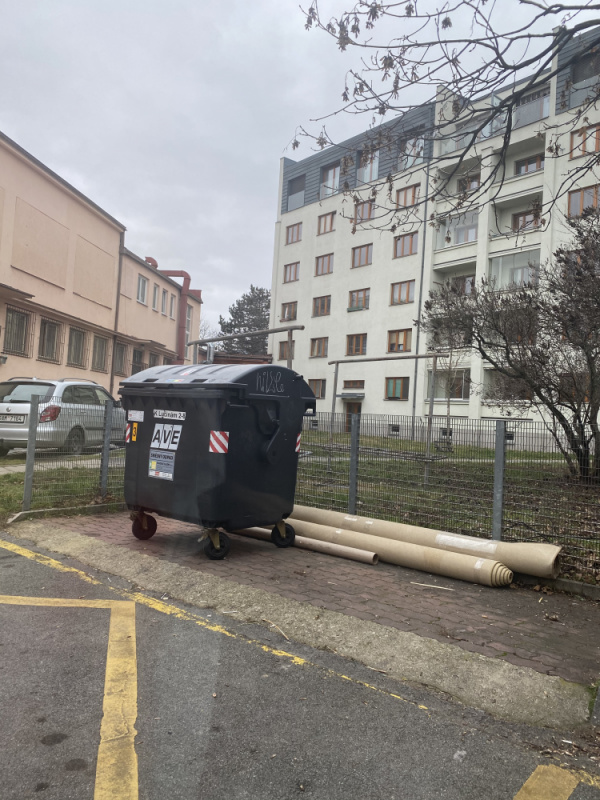děkujeme za Váš podnět. Jedná se o komunální kontejnery ve správě SVJ. Na místo se zajedeme tento týden podívat a poklidit.