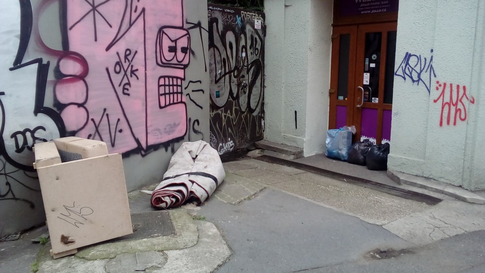 Děkujeme za sms zprávu. Na místě jsme byli a křeslo, koberec a odpadky (zřejmě z baru), jsme uklidili. Čistá Trojka