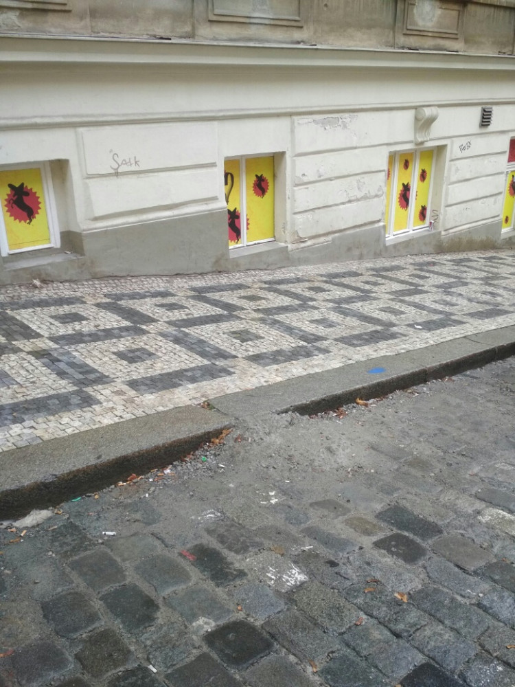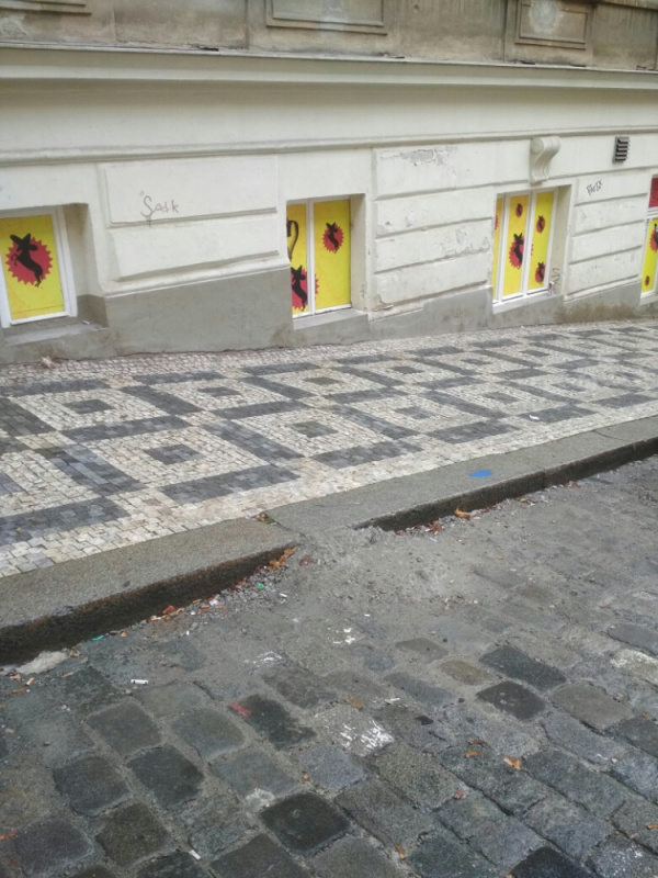 Po nehodě michacky a vytečení betonu na dlažbu zůstala u obrubníku hromádka zatvrdlého betonu. Potřeba manuálně odbourat a zlikvidovat.