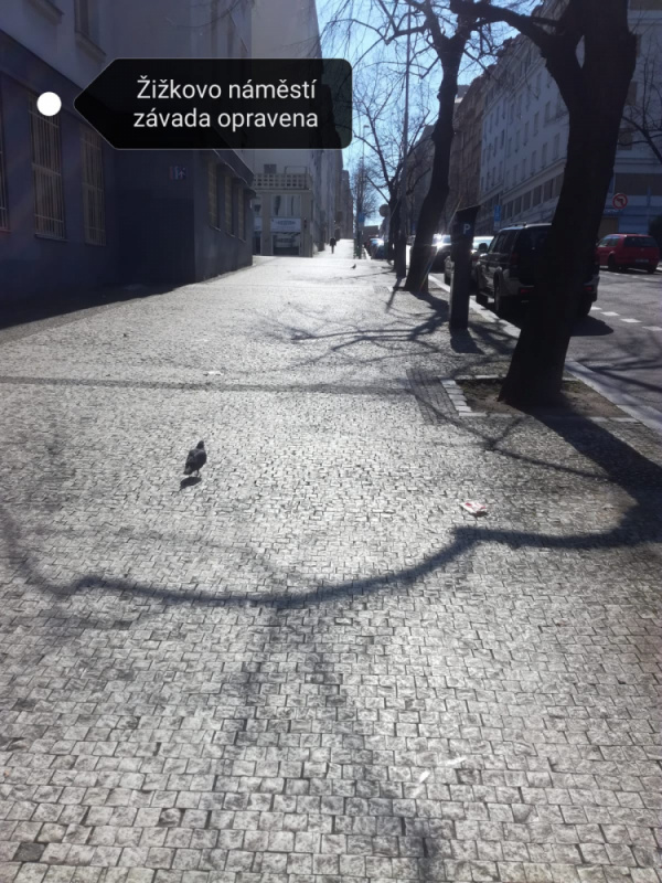 MČ Praha 3 obdržela od TSK vyjádření, že bude tento chodník opraven v rámci běžné údržby komunikací tzn. že závada bude odstraněná v období 3 - 5 týdnů.