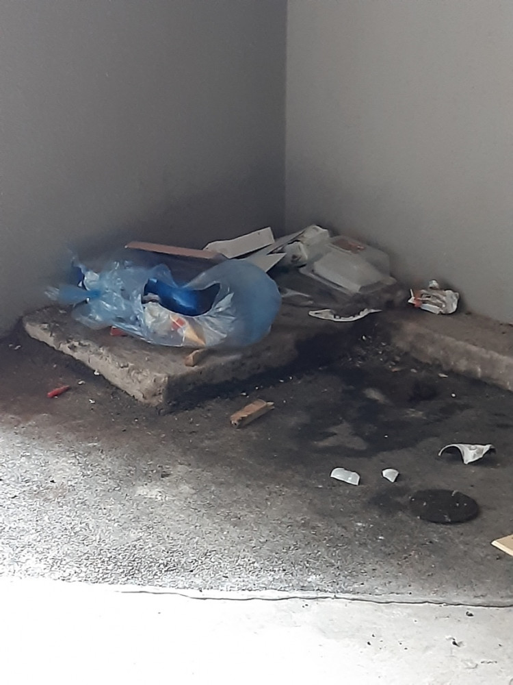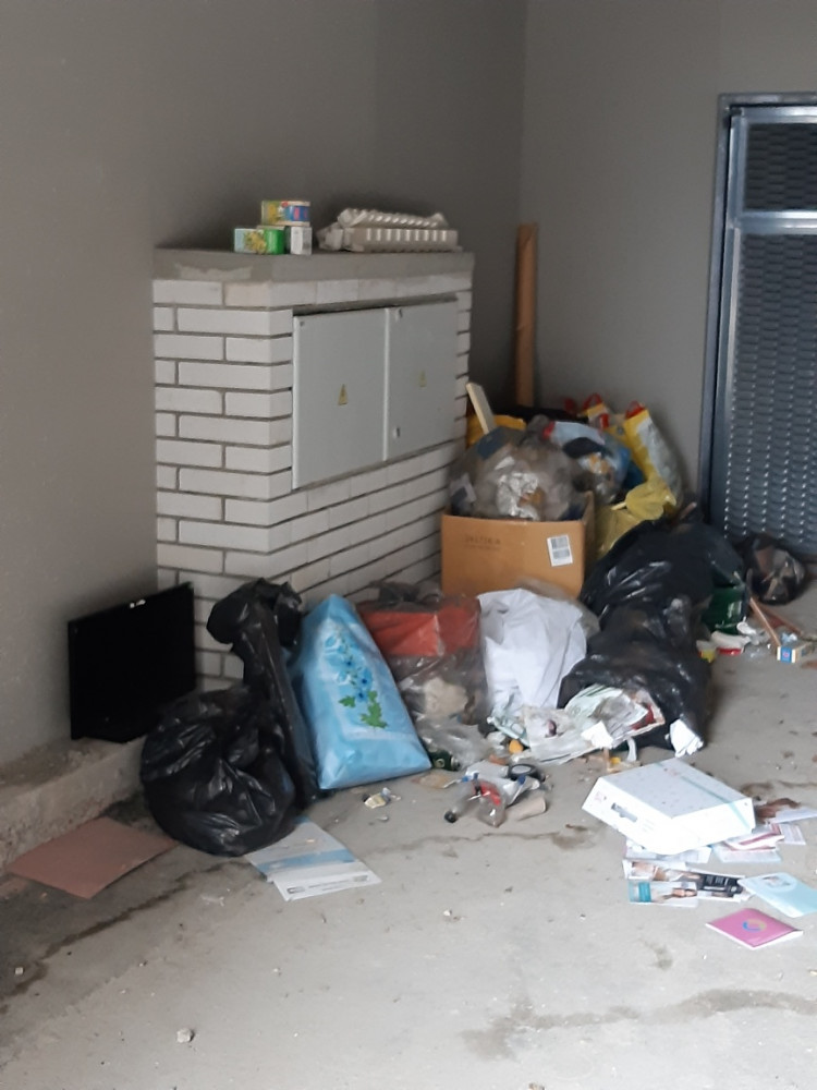 Opět velký nepořádek před stanovišťem popelnic,pod "rampou"