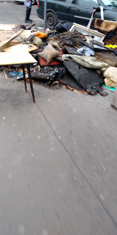 děkujeme za Váš podnět. Jedná se o vyhořelý byt. Majitel je znám a bude vyzván k odstranění.