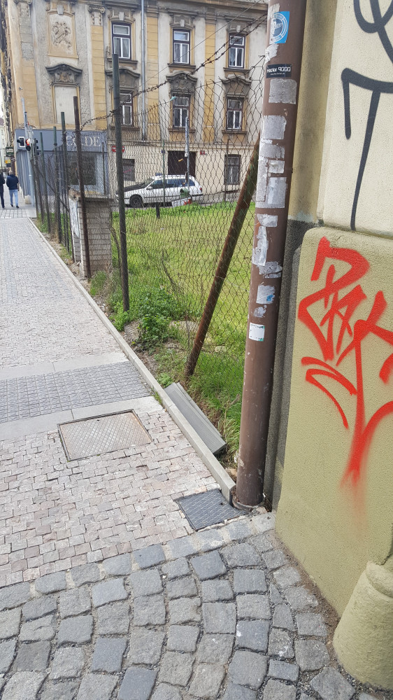 Na Husitské ulici před domem 55/219 byly pohozené na chodníku a vozovce spadlé plastové pásy.Odložil jsem je stranou.Prosím o odvození.