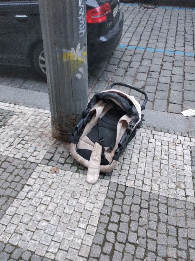 Dobrý den, někdo nechal na ulici starý kočárek. Je možné jej uklidit. Děkuji.