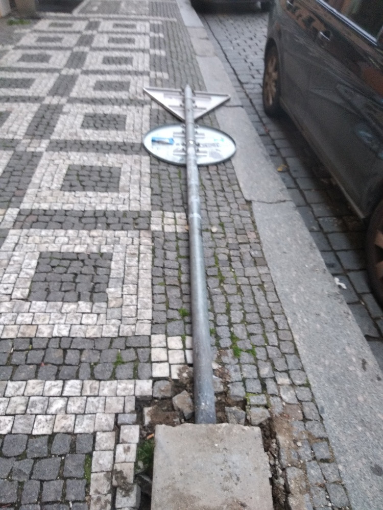 Dobrý den, u nás v ulici je vyvrácená značka. Je možné to opravit. Děkuji