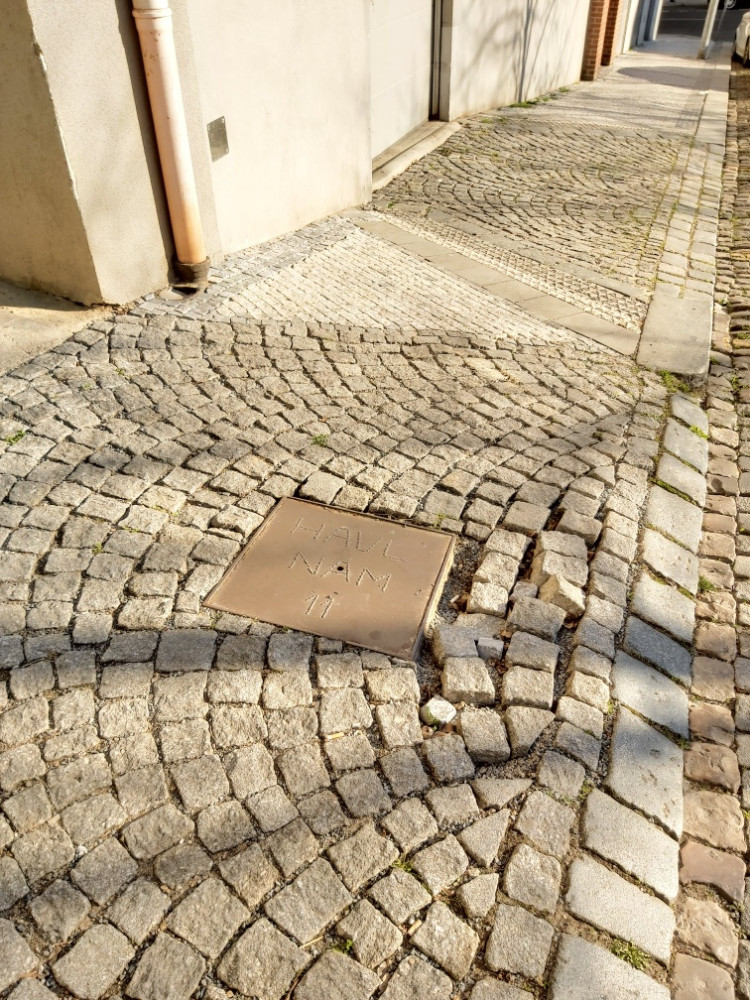 Rozebraná dlažba na chodníku (vjezd do domu)