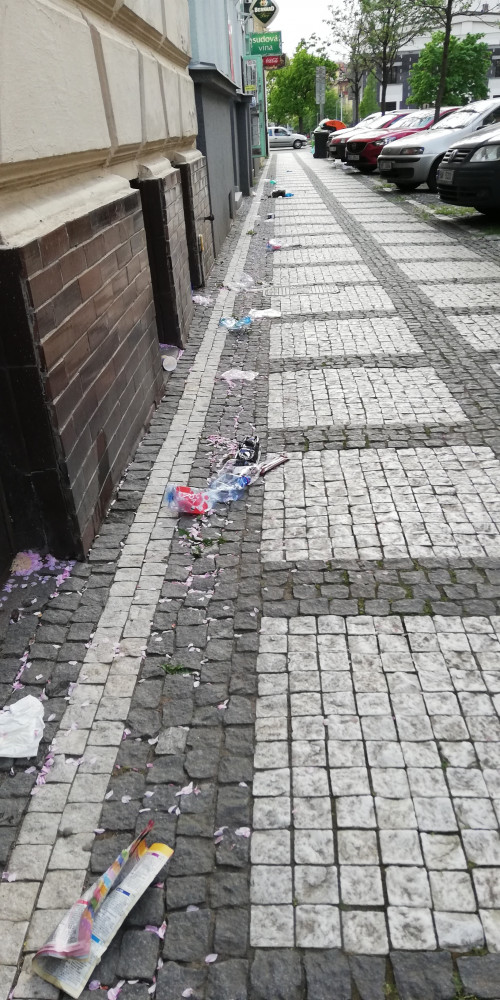 Rozfoukané odpadky v Přemyslovské ulici