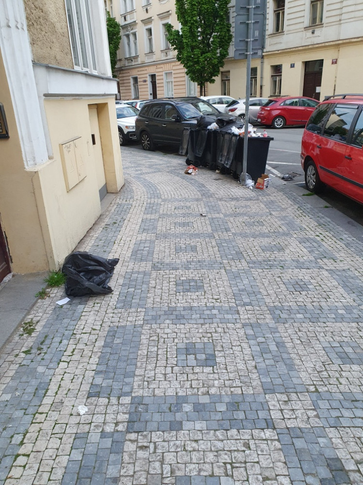 rozhazene odpadky z hotelovych popelnic, psi eskrementy