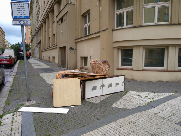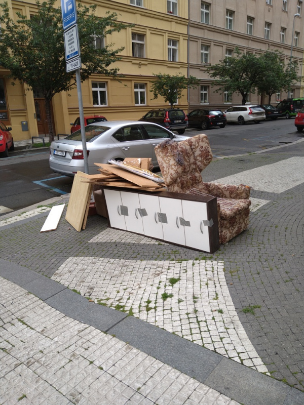 zbylý nábytek po velkoobjemovém kontejneru roh Orlická / Přemyslovská