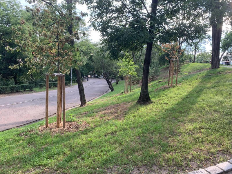 Usychaji tady mlade stromky, mozna by je to chtelo pravidene zalivat nebo k nima dat ty “pytle” s vodou, ktere pomalu zalivaji..