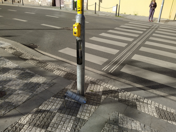 Odkrytý elektro rozvod semaforu pro chodce Prokopova x Rokycanova