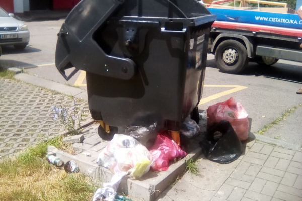odpadky kolem popelnice