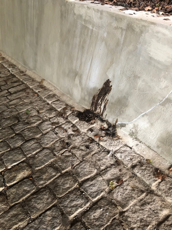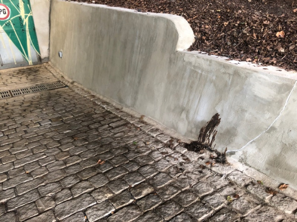 Někdo si opět vykonal potřebu na vjezdu do podzemních garáži. Navíc počítáme rohy vedle vrat, které jsou zapáchající.