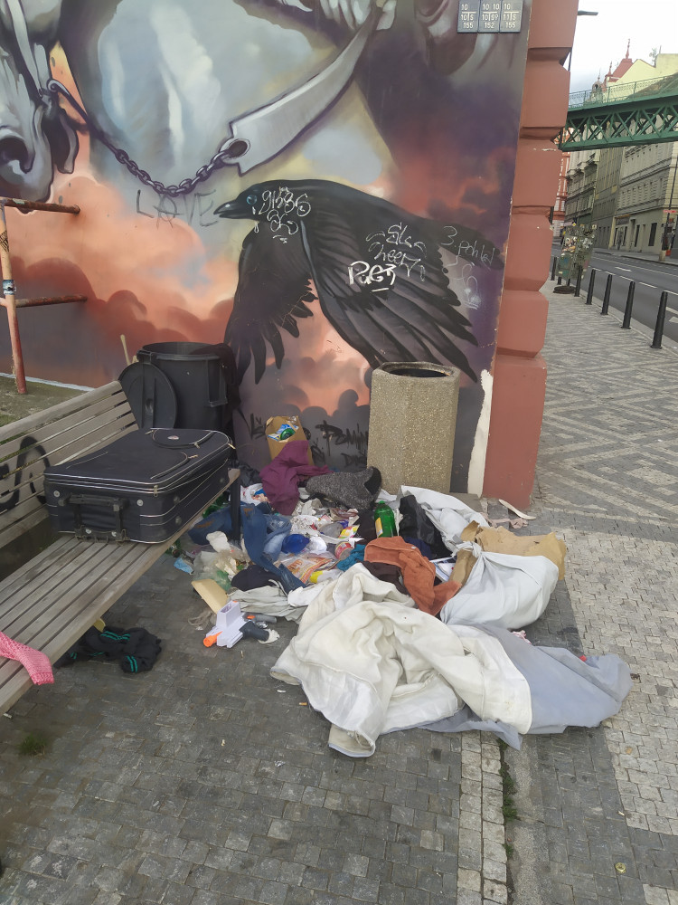 Dobrý den, posílám opět fotky žití v blízkosti bezdomovecké kolonie v okolí křižovatky Husitská-Trocnovská.