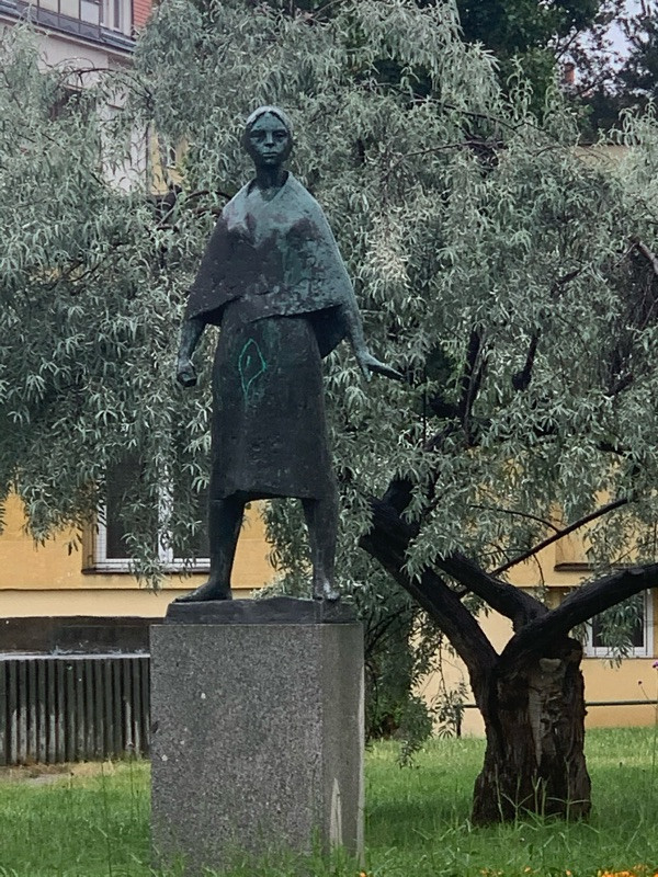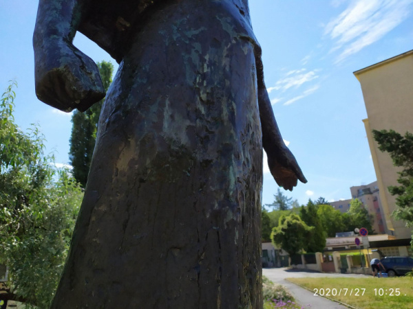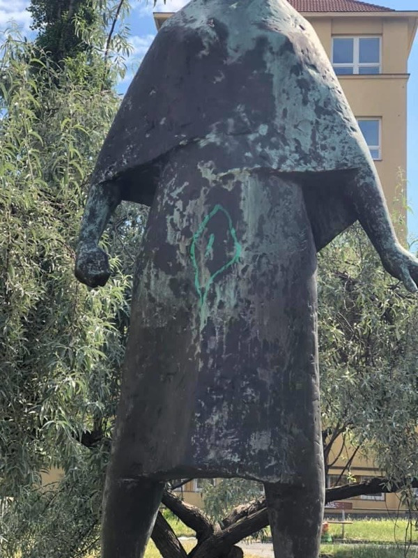 Posprejovaná socha v parku Jeseniova.