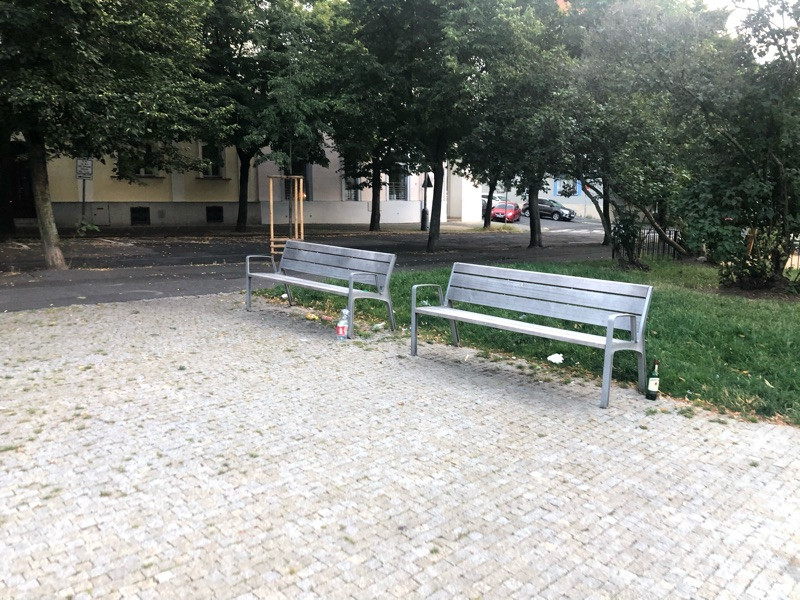 Na celem Namesti Barikad je rozhazeno velke mnozstvi odpadku, predevsim nahore u lavicek+ na dolni lavicce nekdo nechal nekolik velkych rozlozenych krabic