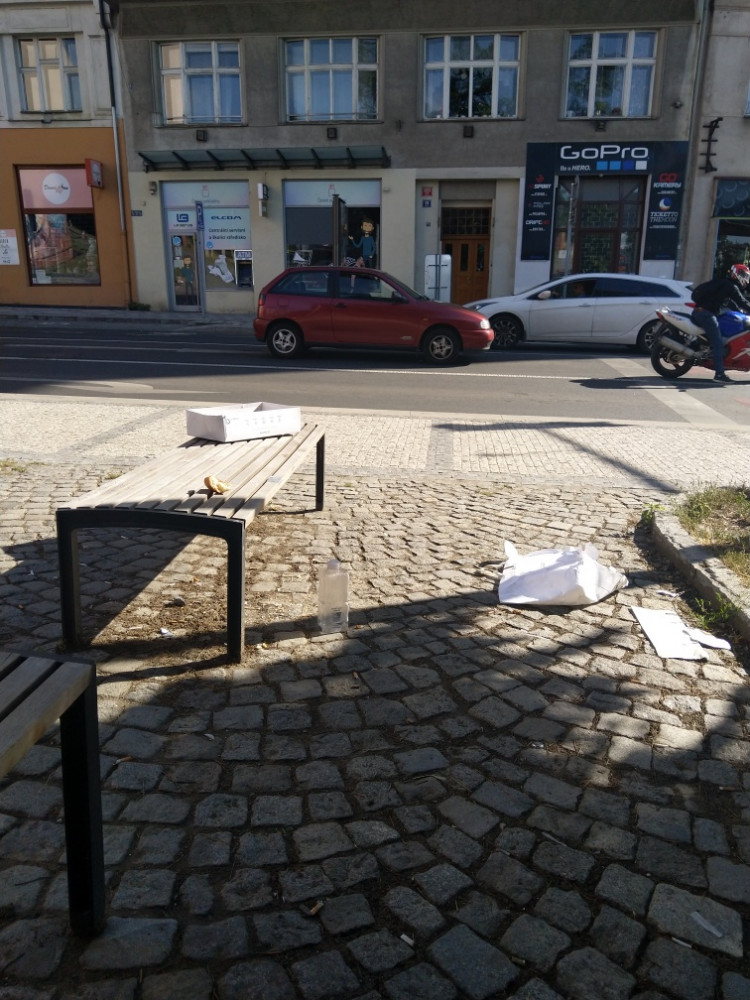 nepořádek kolem laviček