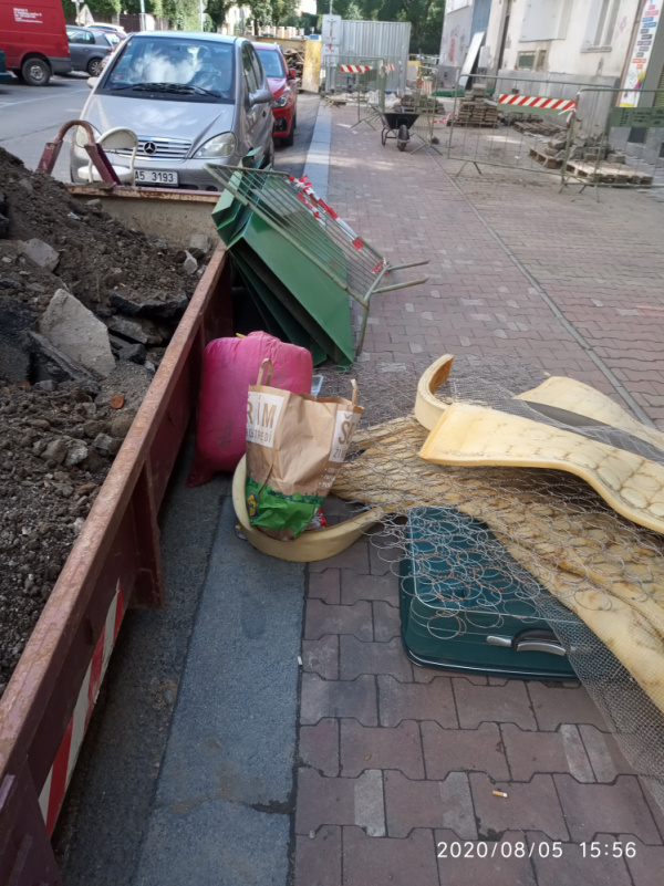 Občané kteří si myslí že ke kontajneru na suť mohou odložit co chtějí tak se mýlí dopouštějí se tím černé skládky,takže nahlašuji že u nízkého kontajneru na suť u domu Ambrožova 9 Praha 3 Žižkov se nachází nepořádek který k němu nanosily občané kteří si myslí že "oni mohou"