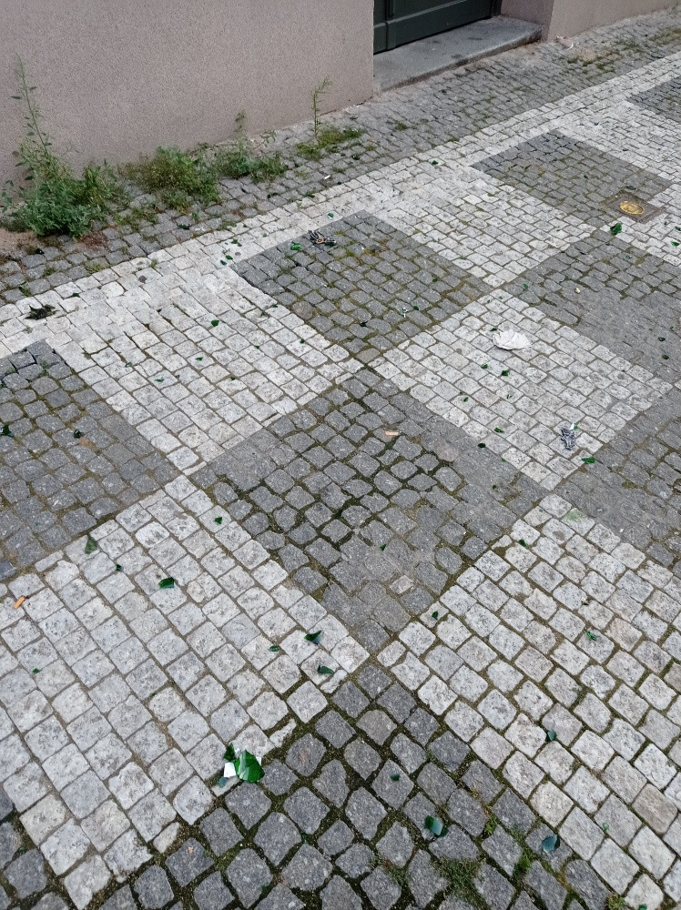 Dobrý den, na ulici jsou od včera střepy z rozbité láhve. Je možné je uklidit. Děkuji.