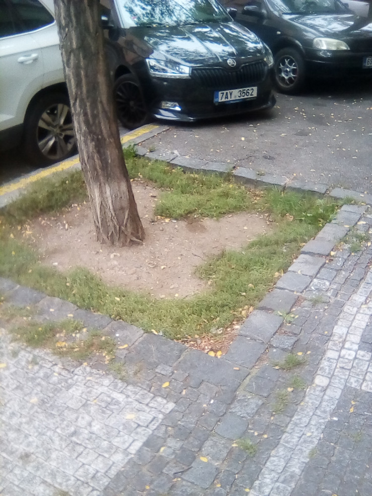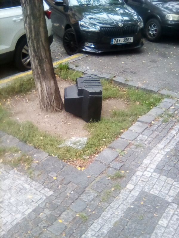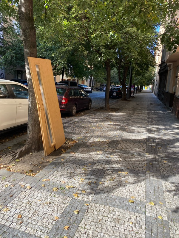 Odložené rozbité dveře opřené o strom, roh ulice Hájkova a Roháčova a zároveň odložená televize u stromu roh Hájkova a hospoda U rohatejch (nemám foto)