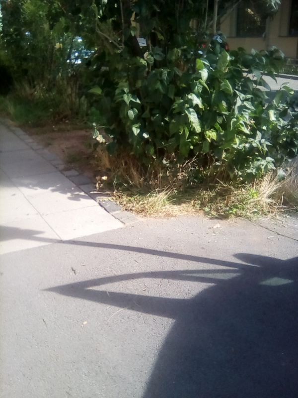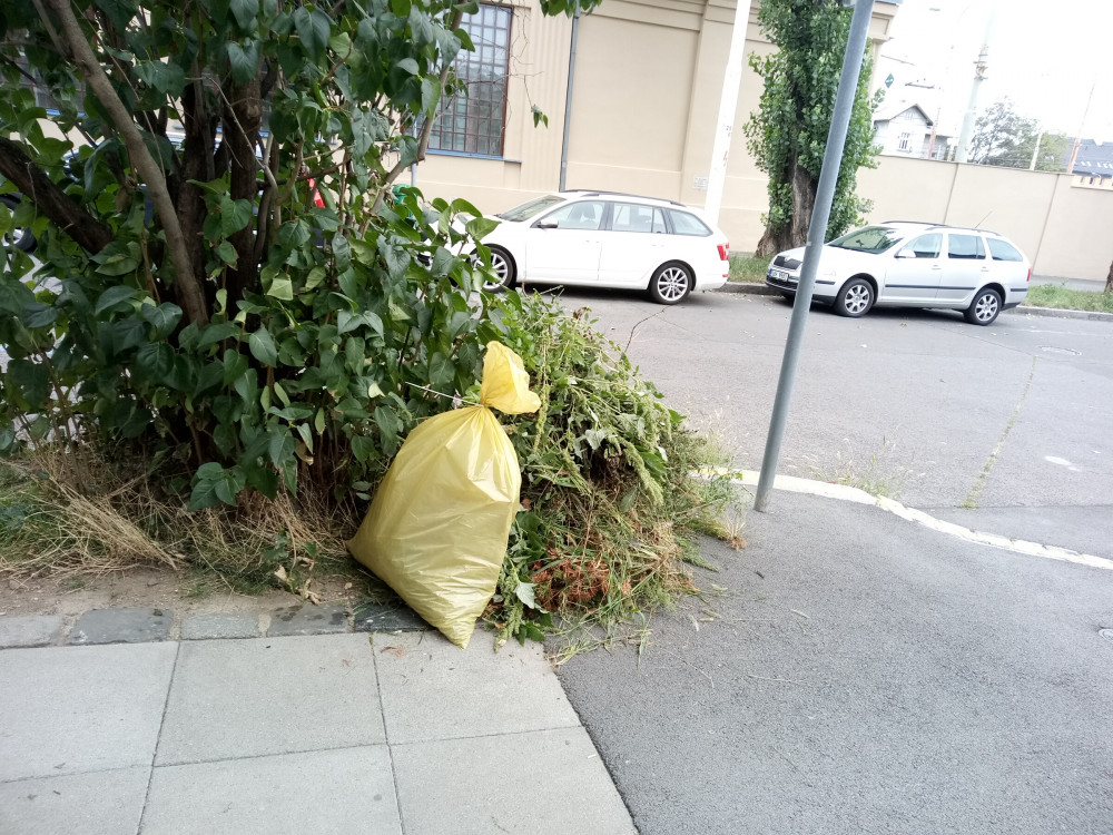 Zeleň a pytel odpadků na rohu ulic Biskupcova a Loudova