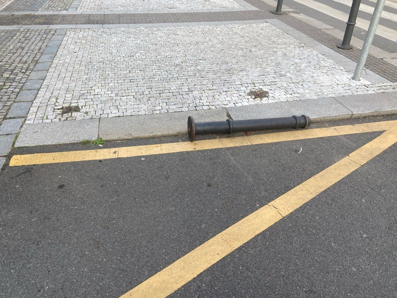 Upadnutý sloupek před ZŠ Jeseniova