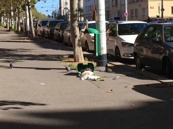 Dobrý den, děkujeme za Váš podnět. Nepořádek jsme poklidi. S pozdravem Čistá Trojka