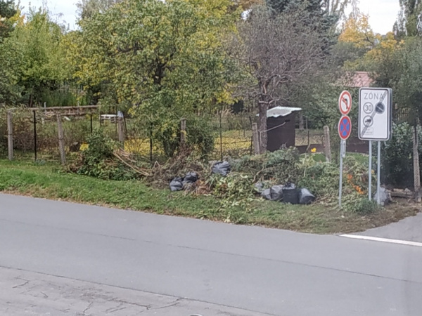 Dne 17.10. měl být zde přistaven kontejner na bioodpad, bohužel ale nedorazil, takže spoluobčané a zahrádkáři založili skládku.