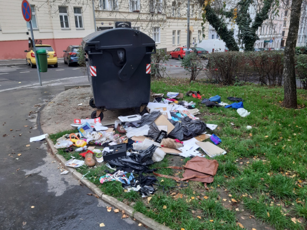 Dobrý den. Děkujeme za Váš podnět. Nepořádek jsme poklidili. S pozdravem Čistá Trojka