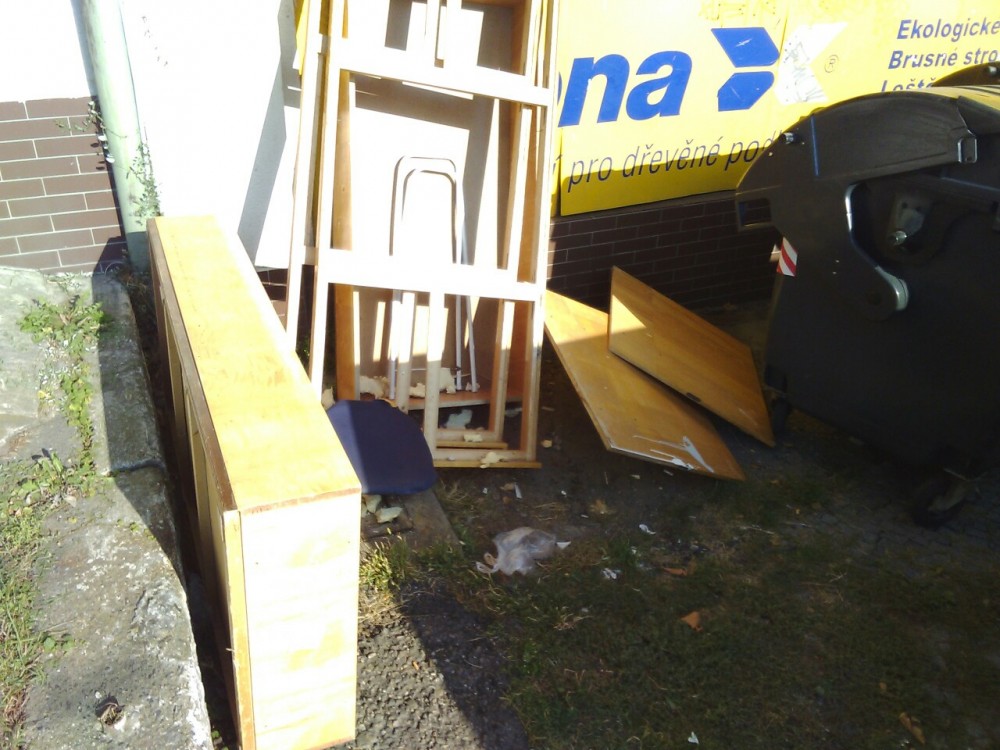 Kusy starých postelí atd. kolem popelnic nepořádek již několik dní