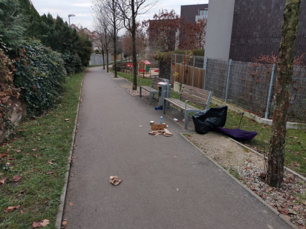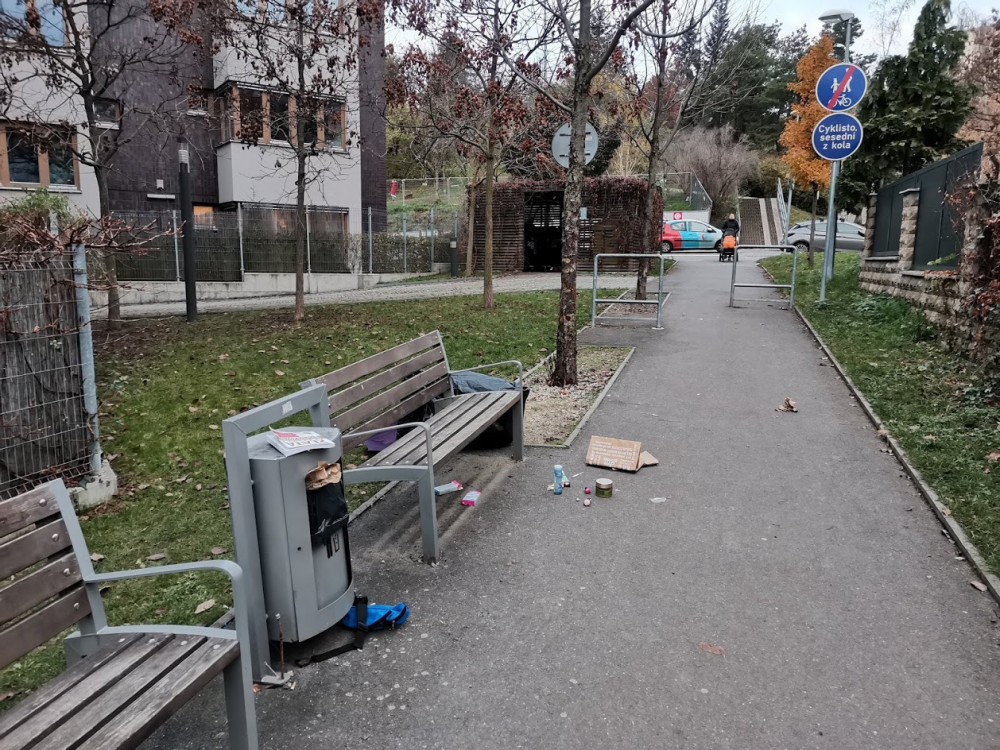 Dobrý den, nad dětským hřištěm je u lavičky na cyklostezce tento nepořádek. Někdo asi vyhrabal přes noc pytel s odpadkama. Děkuji předem. S pozdravem KH