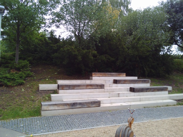 hristatko u dopravniho hriste v jilmove ulici. nad schody s lavickami jsou krovi a ten prostor od schodu ke krovi je plny rozlicneho bordelu. diky moc za uklid.