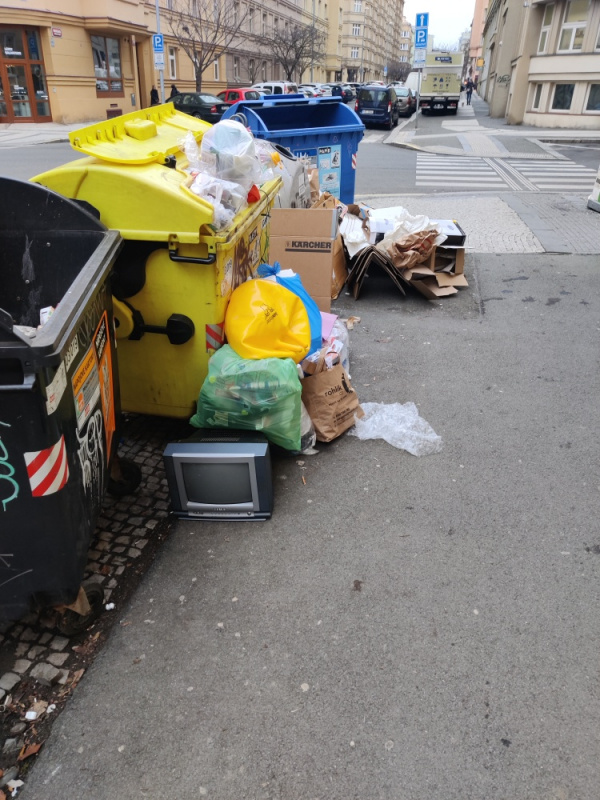 děkujeme za Váš podnět. předali jsme firmě AVE: vyveze a poklidí při pravidelném svozu nádob.