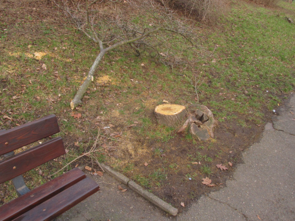 V parku Židovské pece jsem při procházce zjistil, že bylo pokáceno minimálně 8 zdravých stromů. Nechápu, jak je to možné při současné snaze vysazovat co nejvíce zeleně! Byly to krásné vzrostlé stromy, například 2 borovice u kamenů atd. Komu tam vadily? Dále chci upozornit na neshrabané staré listí na chodníku u dětského hřiště a pohozený roztržený igelitový pytel se shrabaným listím. V příloze zasílám dokumentační fotky a prosím o informaci v této věci.