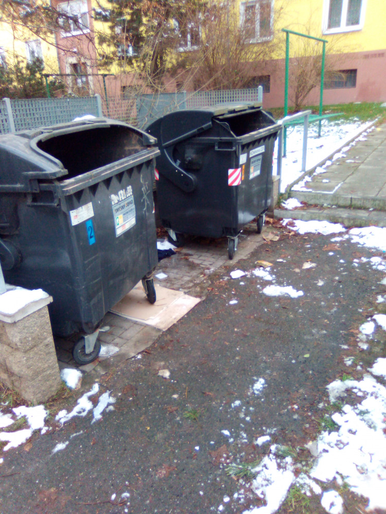 poprosil bych o úklid okolí kontejnerového stání Luční 12 (pro dům Koněvova 2453, 2454, 2455).