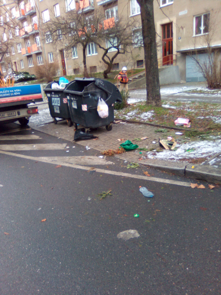 Prosím uklidit u kontejnerů Pod lipami 55