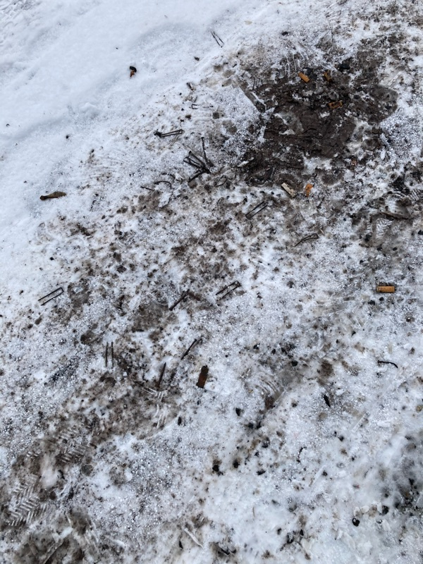 Rozsypané hřeby a špony na celé cyklostezce pres byvalou zeleznicni trat na nakladak.Cesta nebyla ani jednou posypaná ani uhrabaná!!!zrezle hreby jsou nebezpečí pro cyklisty,děti a kočárky.Prosím sypejte tuto cestu alespon sterkem-pri zasnezeni se neda kludne jit nahoru ani dolu-pritom jde o cestu do mš třebešín pro obyvatele Jarova a Vackova!!!!!dekujeme