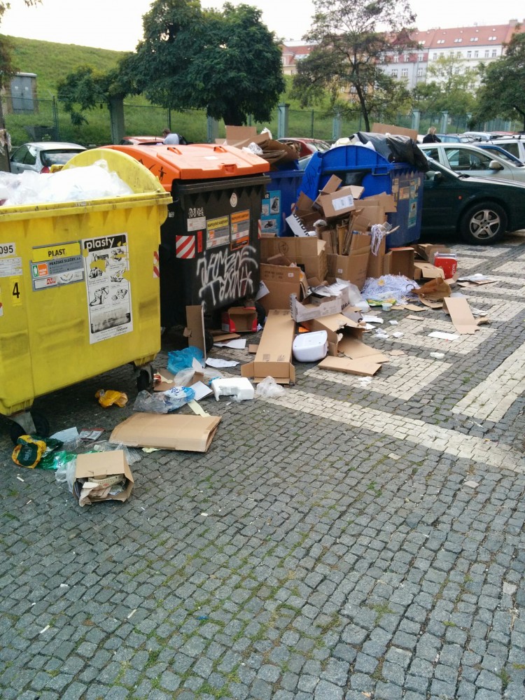 Dobrý den, děkujeme za Váš podnět. Po příjezdu Čisté Trojky bylo kontejnerové stání již vyvezené. I tak jsme uklidili drobný nepořádek a kontejnery uzavřeli. Pavel, Čistá Trojka