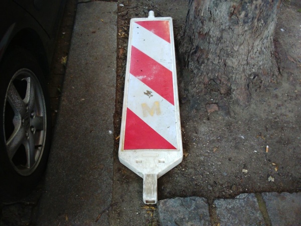 Zapomenutá červeně-bíle pruhovaná dopravní značka. Už týden.