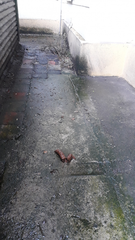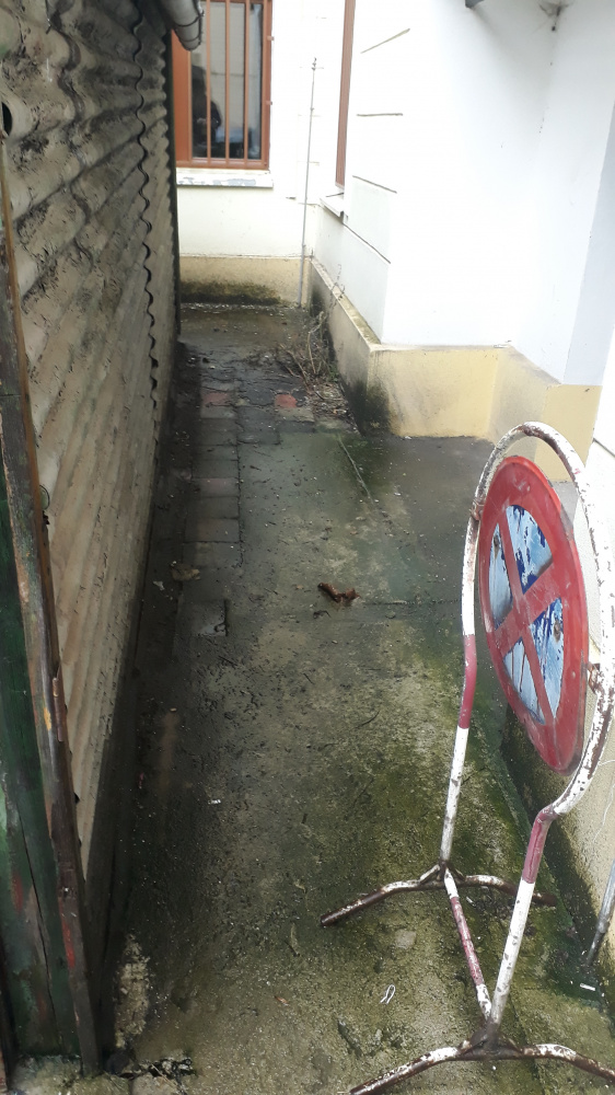 Již několik let žádám správu domu, aby vhodným opatřením (např.mříží) zamezila přístup do prostoru mezi provizorní garáž a dům. Tento prostor je využívám jako WC individui navštěvujícím středisko Naděje v zadní části dvora. Údajně na mříž nejsou peníze, avšak ty se našly na zcela nepotřebnou a všem překážející blokádu na dvoře.