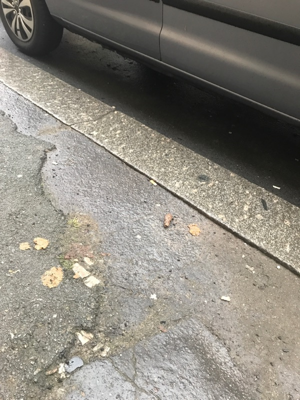 děkujeme za Váš podnět. Uvedenou ulici jsme dnes zkontrolovali a exkrementy jsou poklizené. Tyto úklidy dělají v pravidelných intervalech Pražské služby komplexním úklidem ulic a