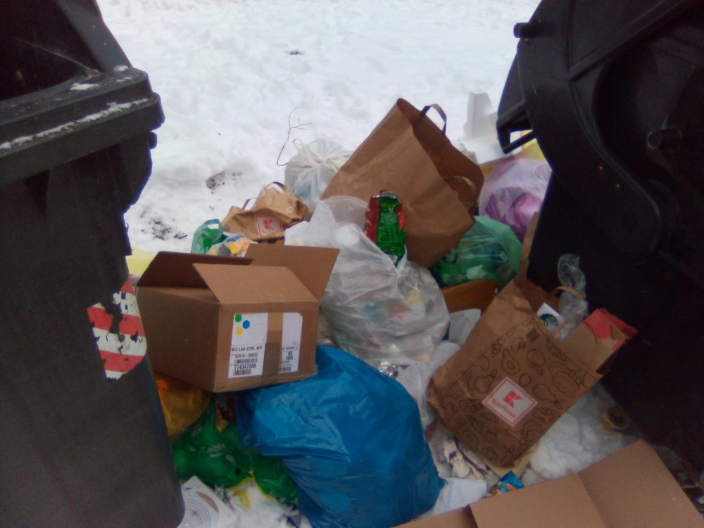 Velký nepořádek kolem kontejnerů na směsný odpad. Pod lipami 2506/55