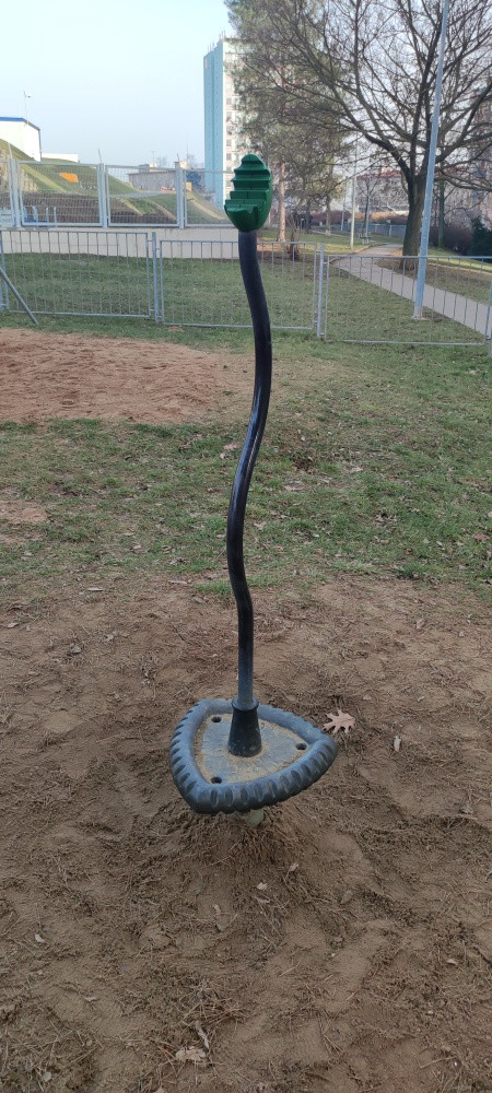 Ryzvyklaná atrakce na dětském hřišti. Dále se na tom nedá točit.