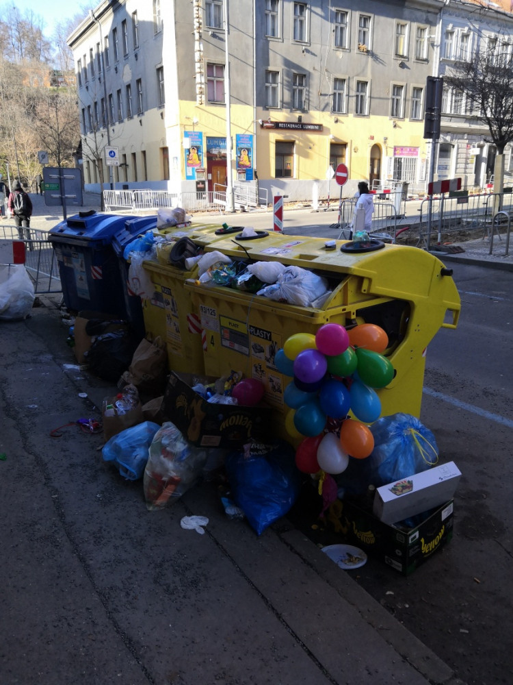 Dobrý den, děkujeme za Váš podnět. Vyveze a poklidí při pravidelném svozu firma AVE. Pavel, Čistá Trojka