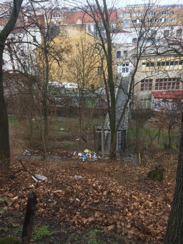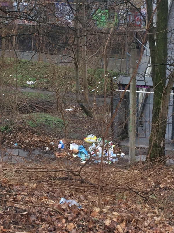 Cerna skladka u mostku za budovou TJ Sokol Zizkov I. na svahu Vitkova.