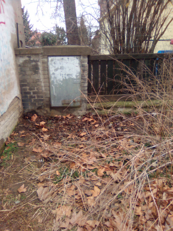 Skládka v křoví. Roh Šrobárovy a Vlašimské.