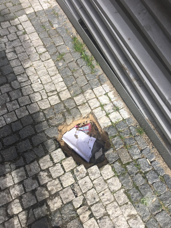 Díra v chodníku. Děkujem
