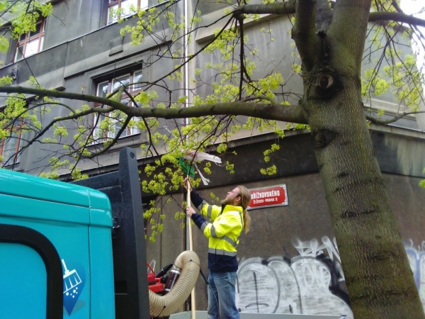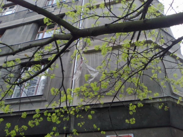 Odpadky na stromech, křižovatka Křížkovského a Ševčíkova.